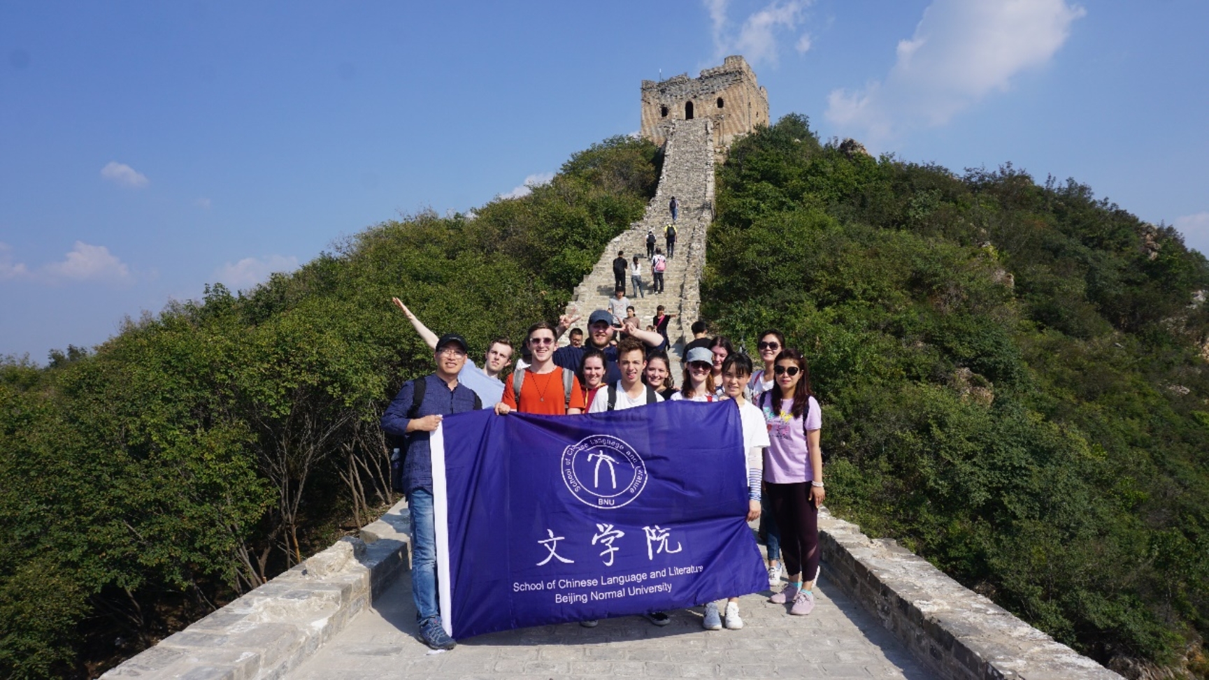 提供中英文联合授课的中国语言、文化与实务课程,如汉语应用写作、商务交际汉语、英汉翻译、中国古代历史、中国近现代历史、中西文化交流与比较、中国古代思想、中国经济、中国政治、中国法律、中国新闻、中国媒体、中国外交、中国城市与乡村、中国流行文化等。在第三学年,学生还有机会参与多样化的专业实习与社会实践,涉及领域包括艺术展览、图书出版、媒体设计、电影戏剧等,以此强化其运用普通话工作的能力,并收集研究数据。在京两年的学习和体验也有助于学生深度了解当今中国人的日常生活。第四学年,学生返回卡迪夫大学,英文撰写学位论文。 During the sophomore and junior years, the School of Chinese Language and Literature of Beijing Normal University offers courses of Chinese language, culture and practice bilingually in English and Chinese, including Chinese Applied Writing, Business Communication Chinese, English-Chinese Translation, Ancient Chinese History, Modern Chinese History, Sino-West Cultural Exchanges and Comparison, Ancient Chinese Thoughts, Chinese Economy, Chinese Politics, Chinese Law, Chinese News, Chinese Media, Chinese Diplomacy, Urban and Rural China, and Chinese Pop Culture, etc. In the junior year, students are also offered opportunities to engage in a variety of professional and social practices in fields such as art exhibition, book publishing, media design, and film and drama, in order to improve their ability of speaking Mandarin at work and collecting research data. The two-year study and experience in Beijing help students to gain a deep understanding of the daily life of today’s Chinese people. In the senior year, students return to Cardiff University to complete their English academic dissertations. 图13 北师大“中西文化交流与比较”课堂 Figure 13 Beijing Normal University’s class of “Sino-West Cultural Exchanges and Comparison” 图14 北师大“中国古代历史”课堂 Figure 14 Beijing Normal University’s class of “Ancient Chinese History” 图15 北师大“基础汉字”课堂 Figure 15 Beijing Normal University’s class of “Basic Chinese Characters” 图16 “中国媒体”课上带领学生参观访问“人民网” Figure 16 Students visit people.com.cn in the class of “Chinese Media" 图17 原北师大校长、卡迪夫大学校友钟秉林教授应邀为学生介绍中国教育的现状与未来 Figure 17 Professor Zhong Binglin, former President of Beijing Normal University and alumnus of Cardiff University, was invited to deliver a lecture on the current development and future prospects of China’s education to students 图18北师大免费成人直播