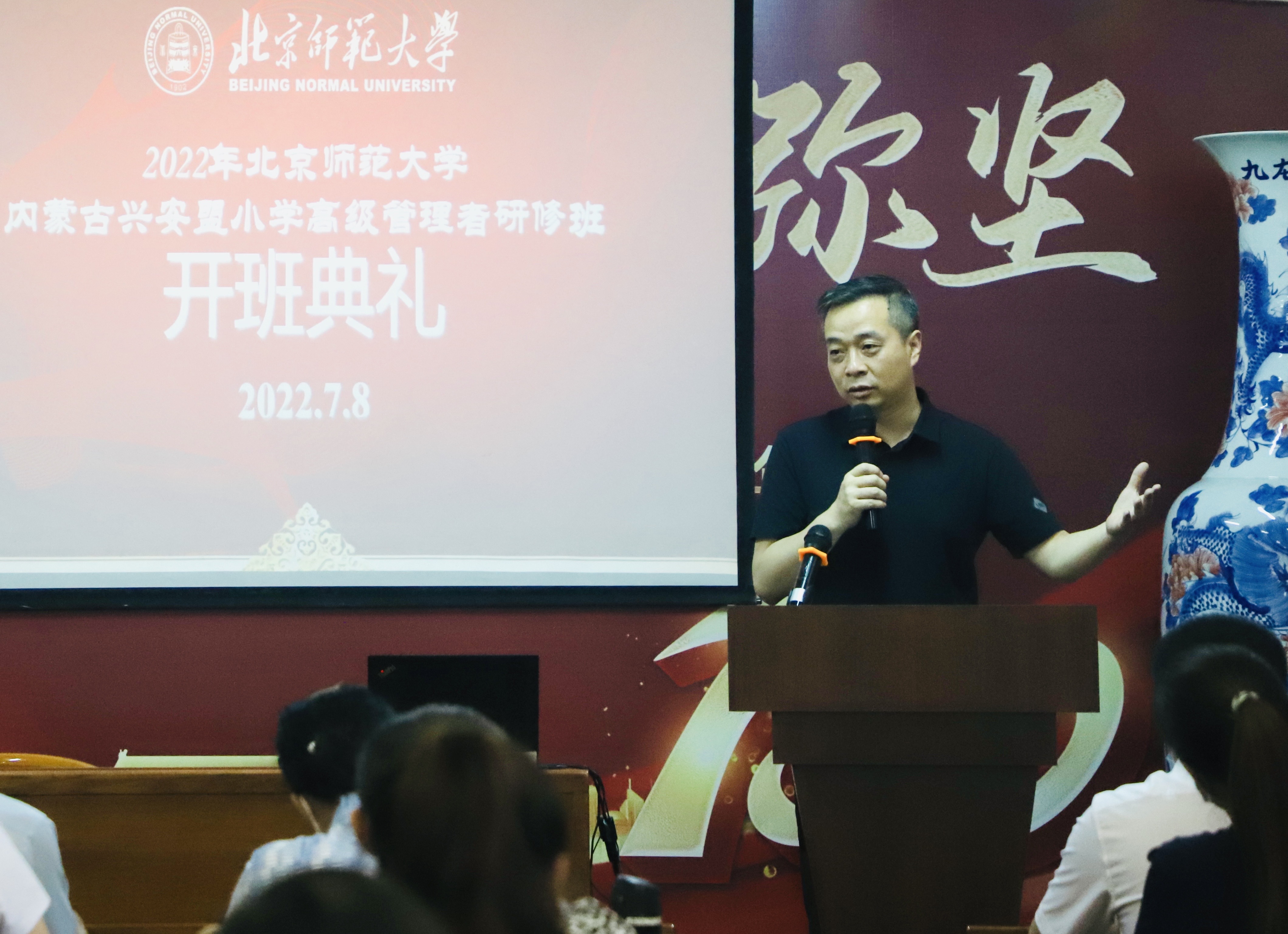 对兴安盟教育的关注和支持表示感谢。朱局长谈到,兴安盟是中国第一个省级民族自治区——内蒙古自治区自治政府的诞生地,也是党民族区域自治制度最早的实践地,教育水平、教育实践能力都有待提高,在北京市教委的精准助力、全方位帮助下,兴安盟教育有了新的提升平台。借此机会,朱局长也对研修班学员提出“四强化”的期望,即强化教育思想、强化学习意识、强化差距意识、强化纪律意识。希望校长、干部们能够在研修学习中用心思考,积极研讨,进行深层次学习,转化新思路,助力兴安盟教育发展。此外,朱局长热情地欢迎康书记及北师大免费成人直播