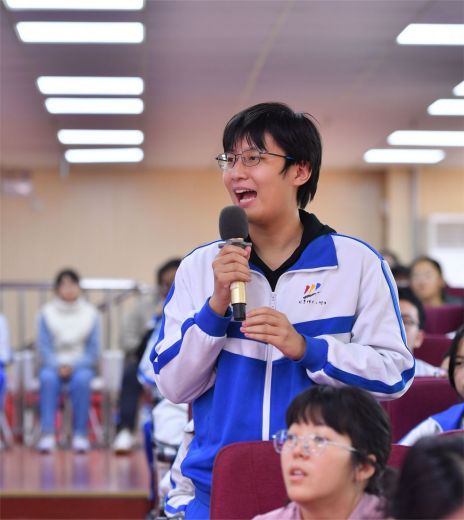 《人民文学》杂志副主编、茅盾文学奖获奖作家 徐则臣 主讲《成为作家》 讲座结束后,徐则臣老师与现场同学进行互动交流,对同学们提出的“如何下定决心成为一名作家”“如何从写作文跨越到文学创作”以及“如何用一句话概括讲座内容”等问题真挚耐心地做出解答。徐老师建议同学们通过不懈地写作实践努力培养自己的发散思维,尝试通过“找到放松的写作状态”与“不断向自己提问”来打开思路,还以切身经历风趣地鼓励同学们,“成为一名作家真的非常容易”。 现场同学向徐则臣老师提问 活动合影 免费成人直播