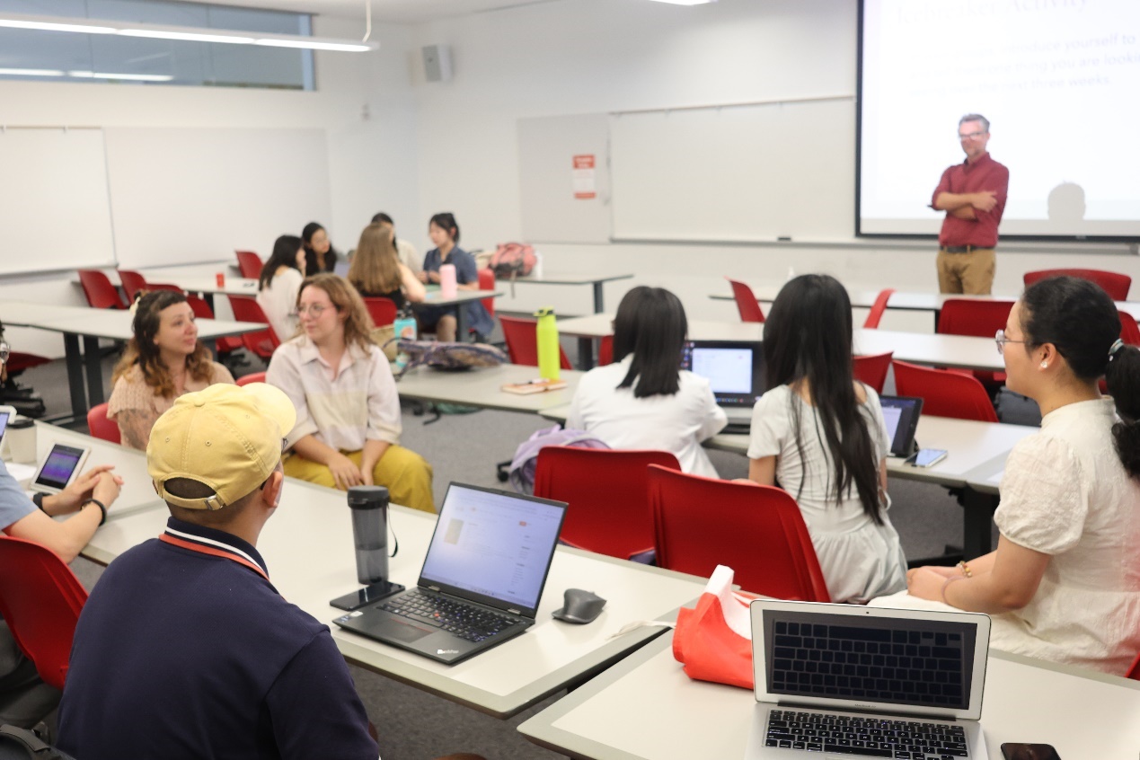 开营仪式上,俄勒冈州立大学艺术与传媒学院薛磊教授和Raymond Malewitz教授对北师大师生的到来表示热烈欢迎,展示了俄勒冈州立大学的校园景观,介绍了研习营的基本情况和课程设计。随后,各位同学在研究生助教带领下分组破冰,交流学习、生活期望,为深入研讨做好准备。