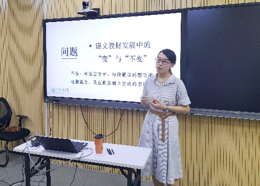 吴欣歆研究员的《统编教材研究:视角与思路》,组织学员通过小组讨论、集中分享等方式研讨统编语文教材研究理论框架、经典理论以及注重分类的层次性与系统性。白如助理研究员的《〈开明文言读本〉的编纂特色及教学理念》,从体例编排、篇目选取、助读系统等方面深入研讨了1948年由叶圣陶、吕叔湘、朱自清编纂的《开明文言读本》。
