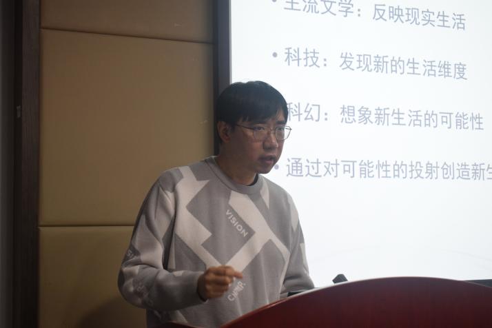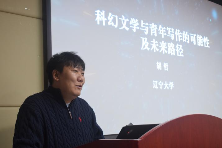 副教授胡哲介绍了辽宁省在科幻文学发展上的关注与举措,探讨了科幻与青年写作的四大核心问题:代际更迭中的范式突破、技术想象的聚类与重构、想象的保鲜期难题、流量时代的叙事转变,强调二者是双向赋能的动态过程。