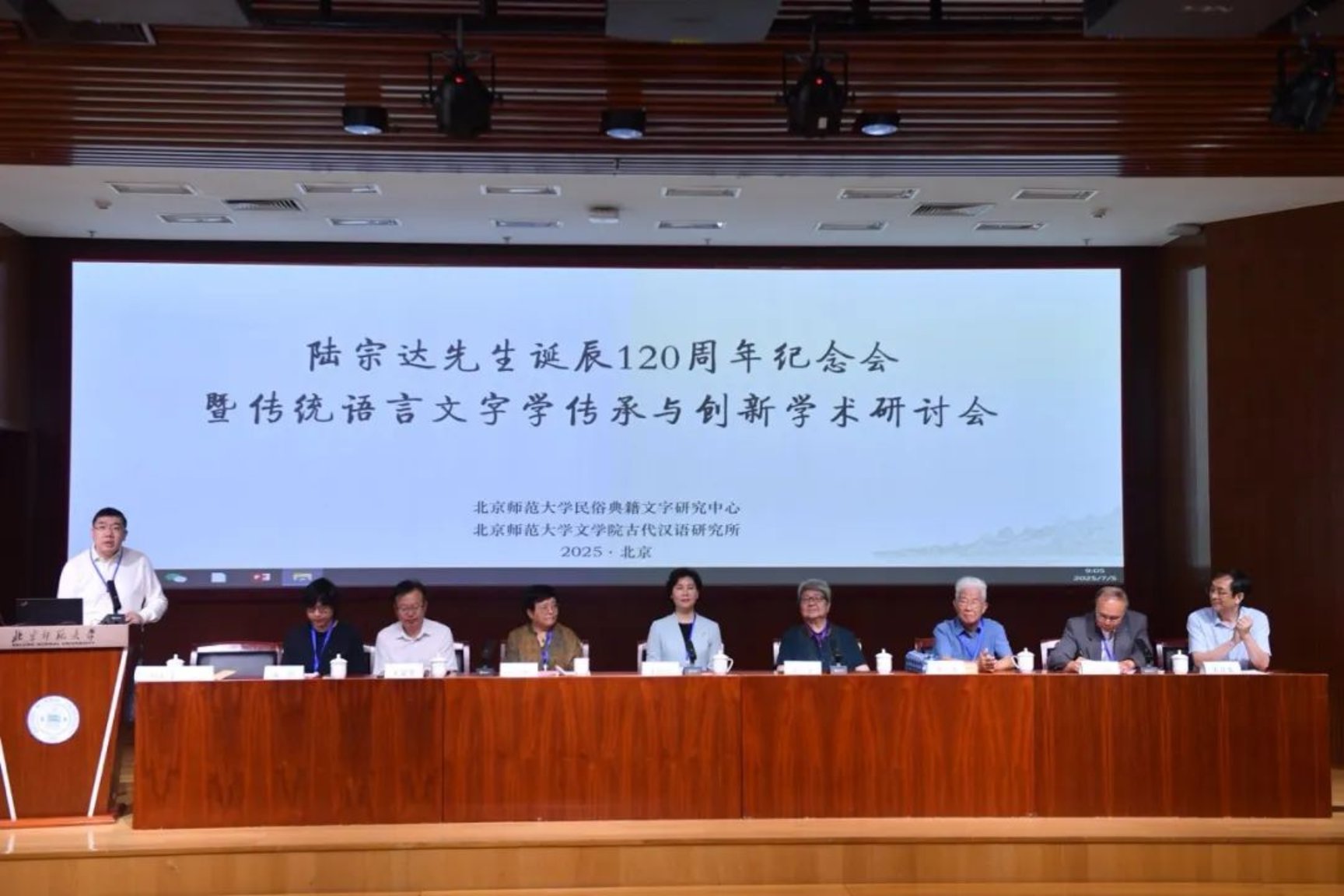 王宁高度评价了陆宗达作为中国传统语言学卓越研究者与领导者的历史地位,尤其强调了陆宗达在训诂学濒危之际力倡复兴的关键作用。王宁指出,陆宗达引领了二十世纪训诂学的学科复苏,并在研究生制度开放初期,将章黄学术正式纳入北师大古汉语学科体系,使中国传统语言文字学得以在高校重焕生机。陆宗达是章黄之学在二十世纪的重要传人,他继承发展了太炎、季刚的学术精髓,用系联的方法发掘了《说文解字》的理论框架,总结出了汉字的形义系统与汉语的音义系统,证实了汉语、汉字“文白相续、文为根基”“字词一体、字为基石”的本质特点。王宁回顾了北师大深厚的文史传统,指出陆宗达、刘盼遂、萧璋、俞敏、曹述敬以及诸多前辈学者形成的优秀学术群体,学脉相承、根底坚实、守正创新,为章黄之学在此扎根提供了深厚土壤。王宁强调学科发展得益于国家培育、校方支持及多方襄助,年轻一代学人已崭露头角并肩负传承重任。在新时期人文科学面临考验之际,北师大古汉语学科将在保持自身特色、遵循师承的基础上,秉持开放态度、虚心学习、团结协作的理念,推动中国传统语言学的进一步建设,彰显章黄之学与中国语言文字学的生命力。