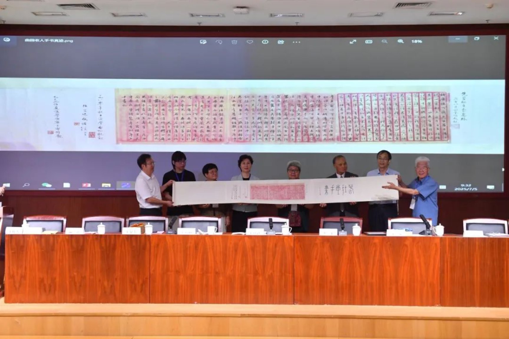 民俗典籍文字研究中心捐赠了由俞平伯、启功、陆宗达、王宁等题跋的俞樾手书序文一卷,认为这是手稿的最佳归宿。王显芳代表学校接受了捐赠。