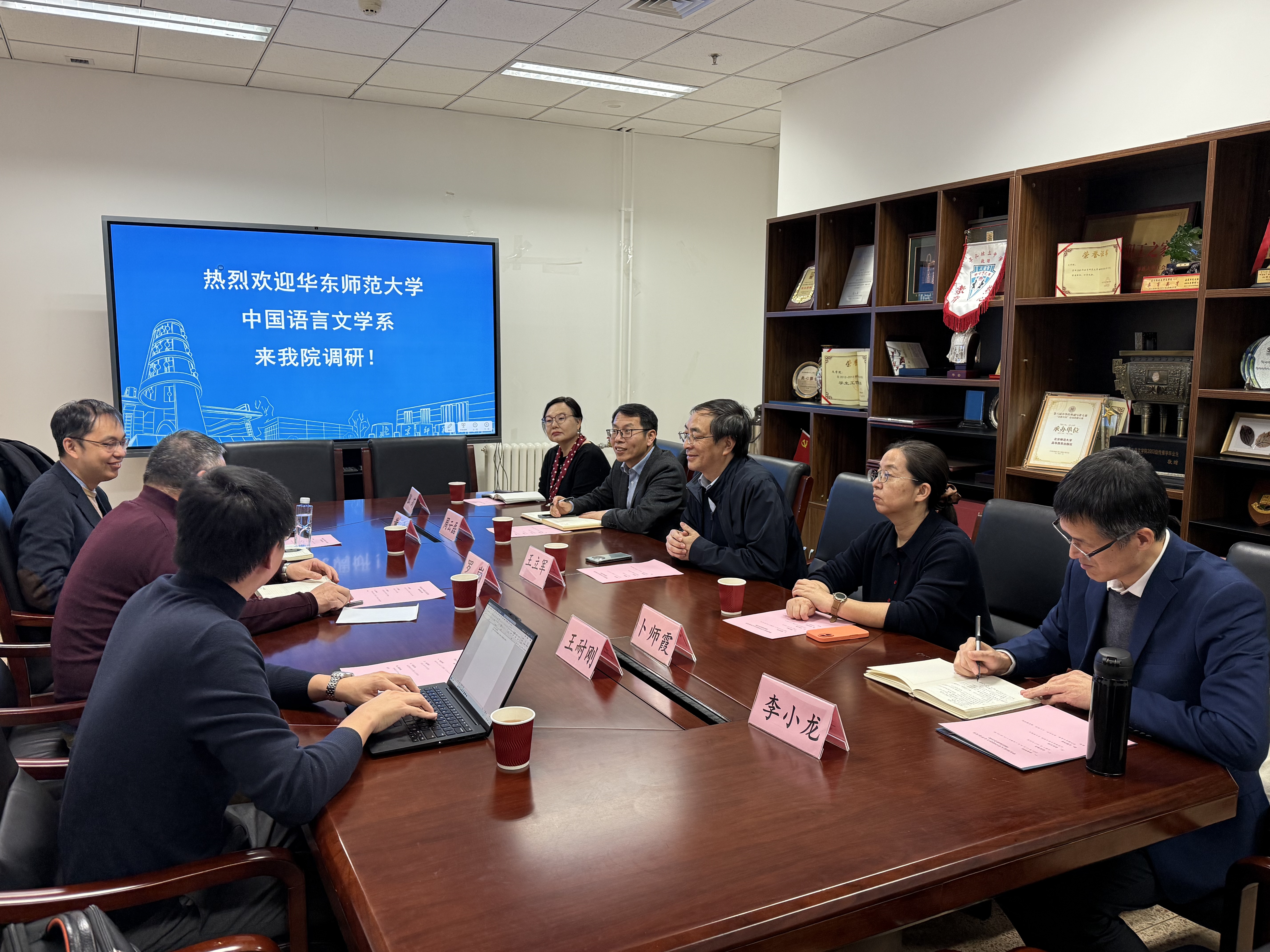 2025年12月26日下午,华东师范大学中国语言文学系系主任罗岗、副系主任黄平、系主任助理王耐刚一行3人前来免费成人直播 调研。交流会由院长王立军主持。