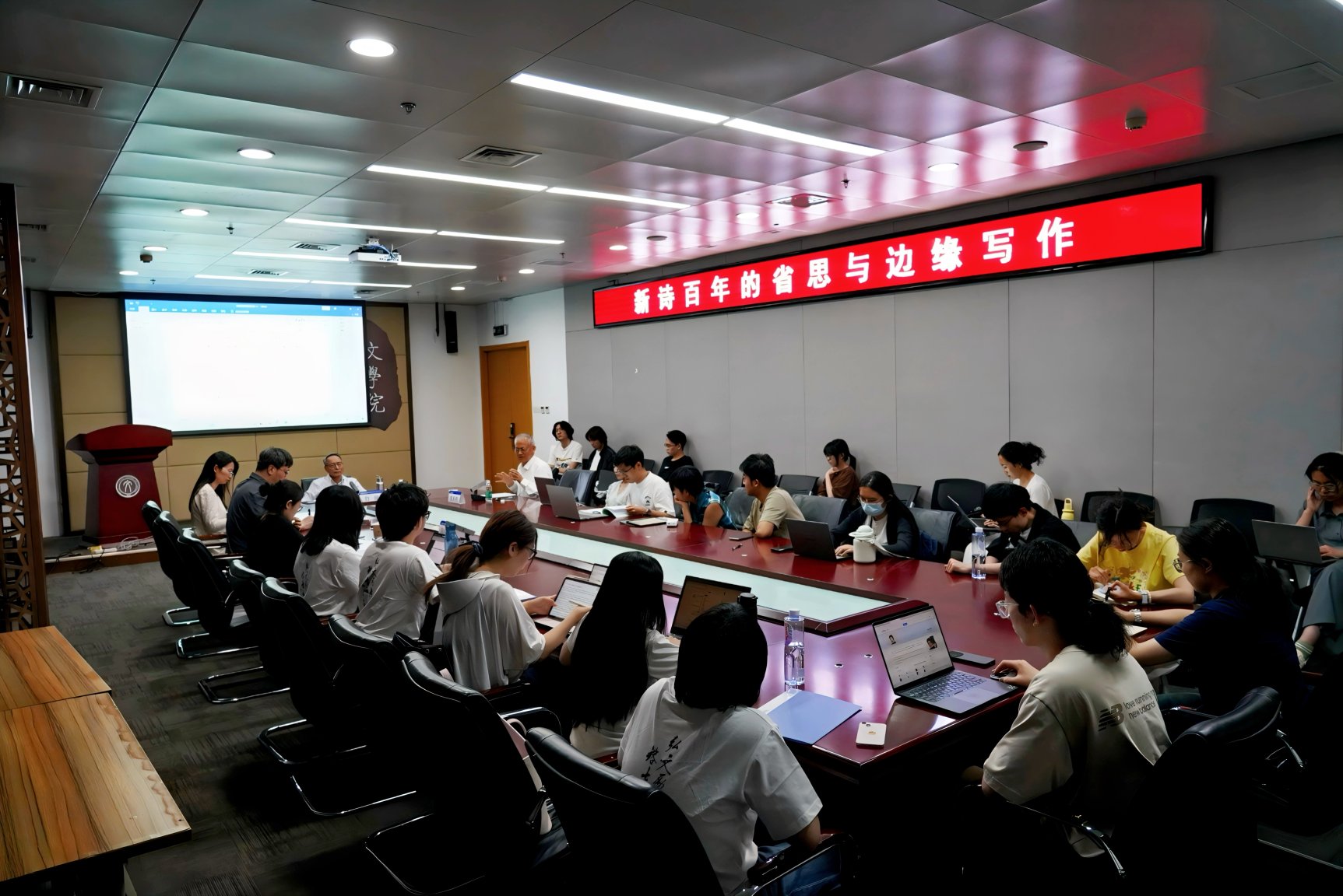 詹澈的发言结束后,沈庆利高度赞赏了詹澈对社会主义、对祖国统一的坚定信仰,并从个人成长史与新诗史的角度评价詹澈的现实主义诗歌创作,邀请与谈老师参与讨论。