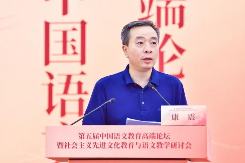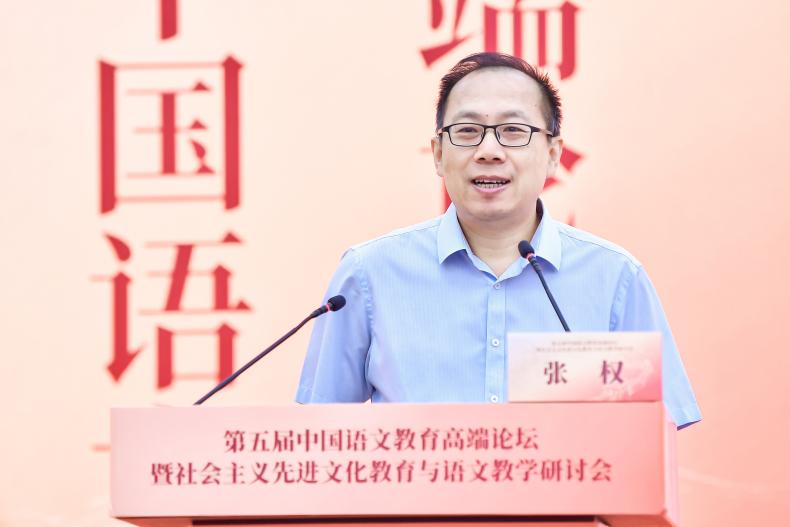 教育部基础教育司二级巡视员张权在致辞中强调,将社会主义先进文化融入语文教学是新时代的战略任务。他指出,语文课程作为国家通用语言文字学习的基础课程,肩负着以文化人、培根铸魂的重要使命。面对世界百年变局和多元文化激荡,必须通过语文教学引导学生增强文化自信,自觉抵制错误思潮。张权提出三点要求:一要深刻认识社会主义先进文化教育的时代意义;二要创新教学方式,善用数字技术打造生动课堂;三要构建长效机制,深化教研支撑、优化评价体系、强化协同育人。他期待与会专家深入研讨,为培养担当民族复兴大任的时代新人贡献智慧。
