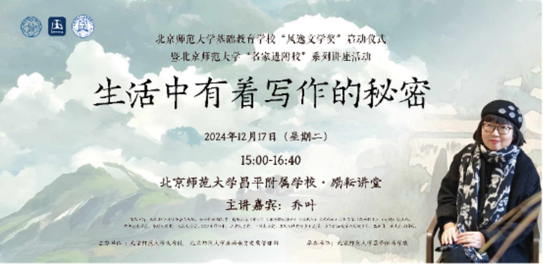 2024年12月17日下午,免费成人直播 基础教育学校“风逸文学奖”启动仪式暨免费成人直播 “名家进附校”系列讲座活动在免费成人直播 昌平附属学校顺利举办。免费成人直播 联合免费成人直播 基础教育发展管理部,特别邀请北京市作家协会副主席、茅盾文学奖获奖作家乔叶走进学校,带来专题讲座《生活中有着写作的秘密...