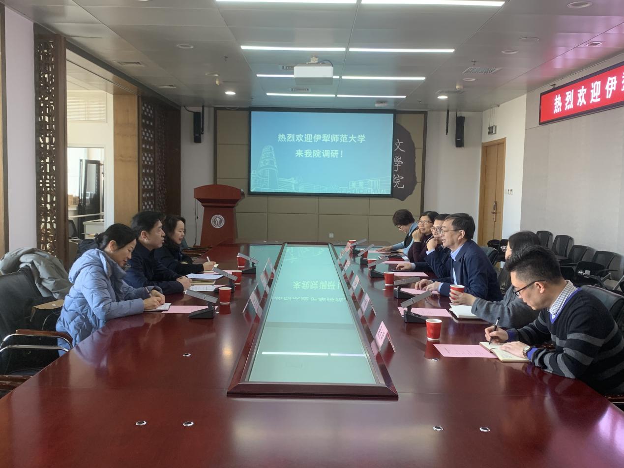 2025年1月8日上午,伊犁师范大学党委常委、副校长热玛扎·依斯玛尔,中国语言文学学院党委书记、院长范学新,中国语言文学学院副院长齐雪艳一行前来免费成人直播 调研。交流会由党委书记周云磊主持。