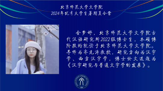 现代汉语研究所孙银新教授、理论语言学研究所许小颖副教授、古代汉语研究所孟琢教授和各位老师代表详细地为参营同学介绍各所发展历程、师资力量、科研成果、国际交流情况以及研究生培养模式。